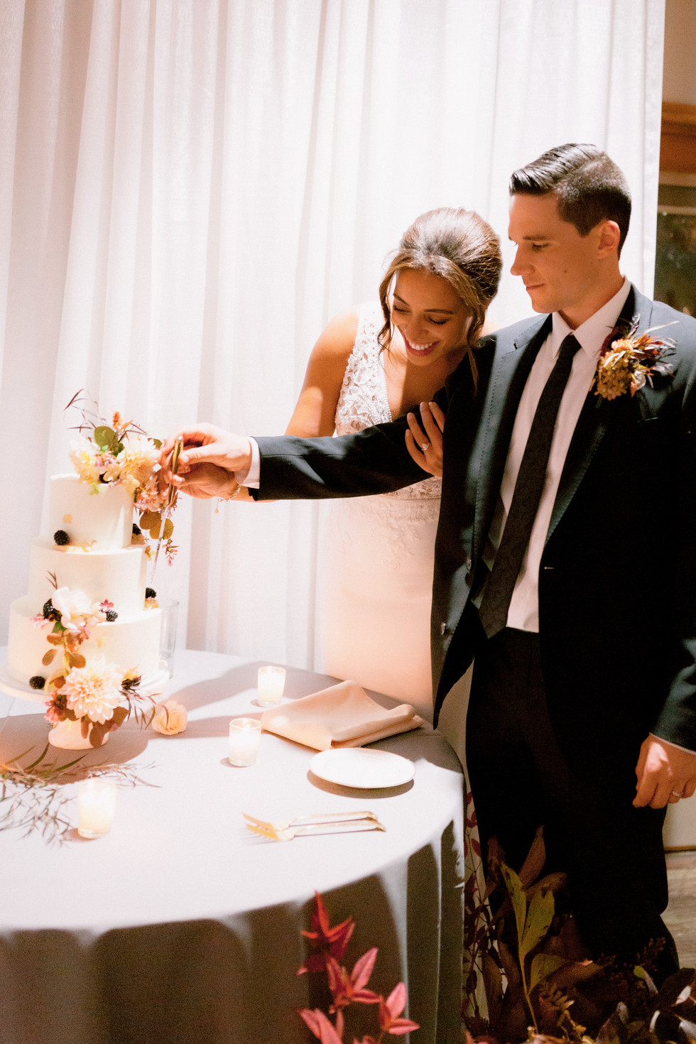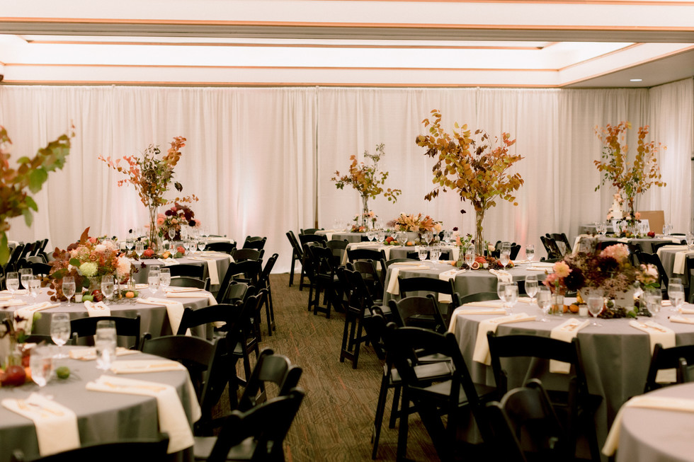 After Amber and Matt chose their venue, the Center for Urban Horticulture in Seattle (which happens to be located near the University of Washington, where it all began) to hold their October 12, 2019, event, Amber started searching for a florist who could help her achieve the harvest-themed, foliage- and fruit-filled celebration she envisioned. They crafted a romantic event that paid homage to the season and to their beginnings, thanks to a surprise visit by the University of Washington marching band and, later, an after-party at their favorite college dive bar. Catch the whole feature on Martha Stewart Weddings!